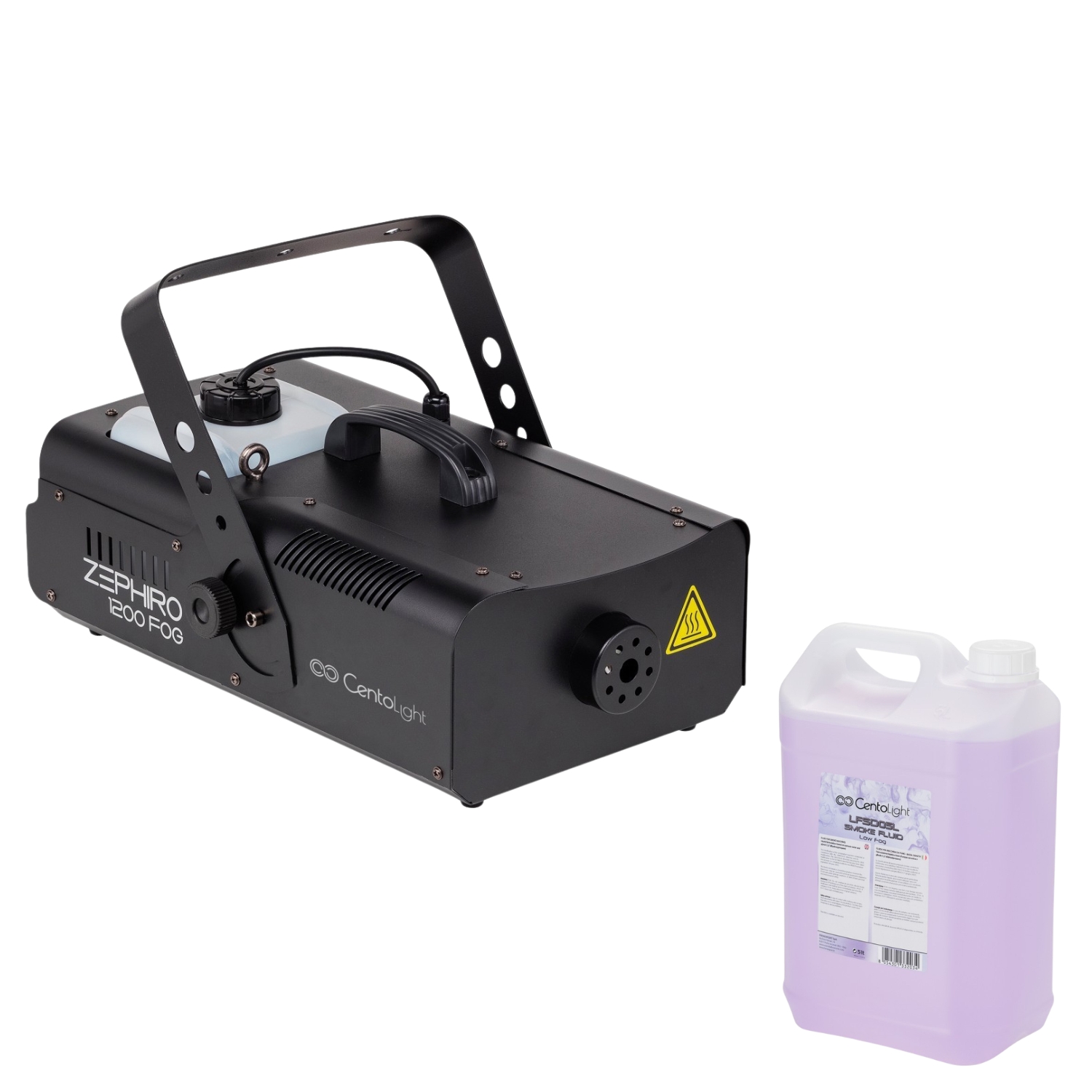 CentoLight ZEPHIRO 1200 FOG. Masina de ceata. Flux de ceata 452 m³ / min. Umple rapid o camera de dimensiuni medii. Flux continuu de ceata dupa un timp minim de incalzire. Controller cu fir pentru pornirea si oprirea emisiei de ceata. Telecomanda fara fir pentru pornirea si oprirea emisiei de ceata. Element de incalzire: 1200 Watt. Distanta de iesire: 4-5 metri. Timp de incalzire: Aproximativ 3 minute. Capacitatea rezervorului: 2,5 litri.
