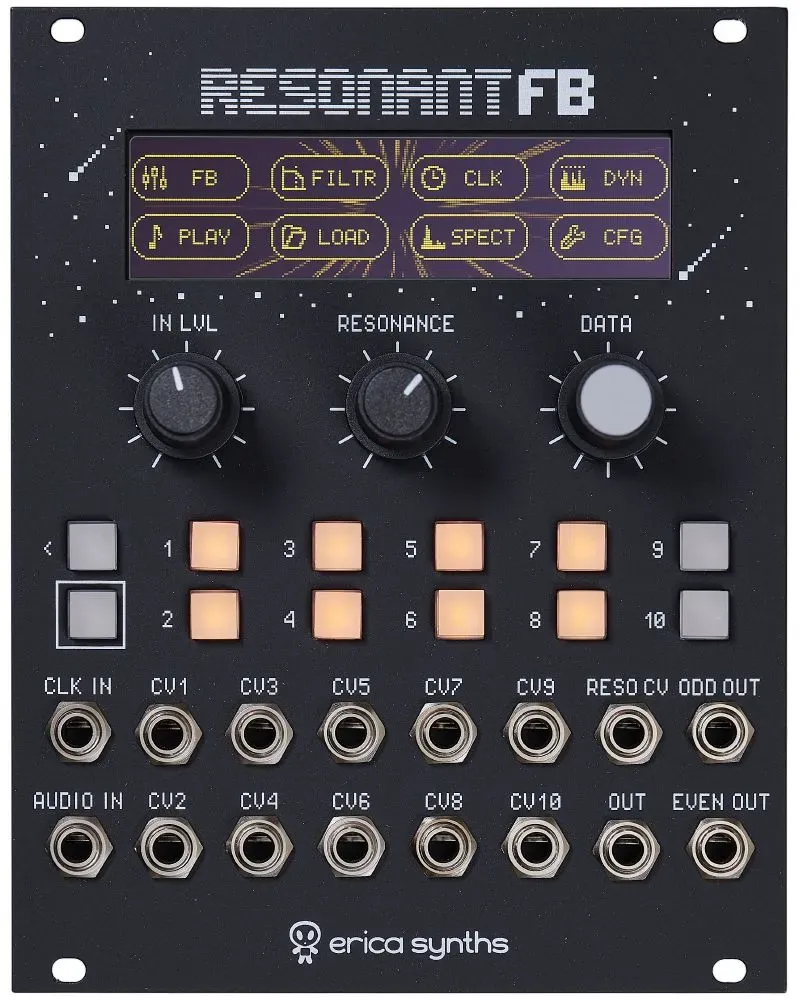 Erica Synths Graphic Resonant FB se inspiră din Serge Resonant EQ în alegerea benzilor de frecvență. Cu excepția celor mai joase și celor mai înalte benzi, celelalte opt sunt distanțate la interval de septimă. Rezultatul este un caracter tonal care amintește de instrumentele acustice.