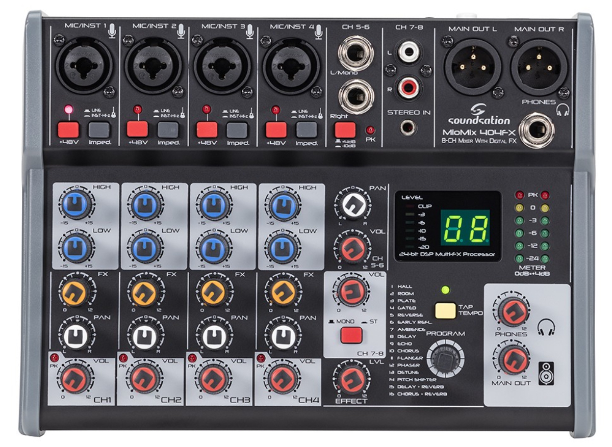 Soundsation MioMix 404FX este un mixer cu 8 canale și o multitudine de efecte digitale, ideal pentru recording în casă, la concerte și podcasting.
