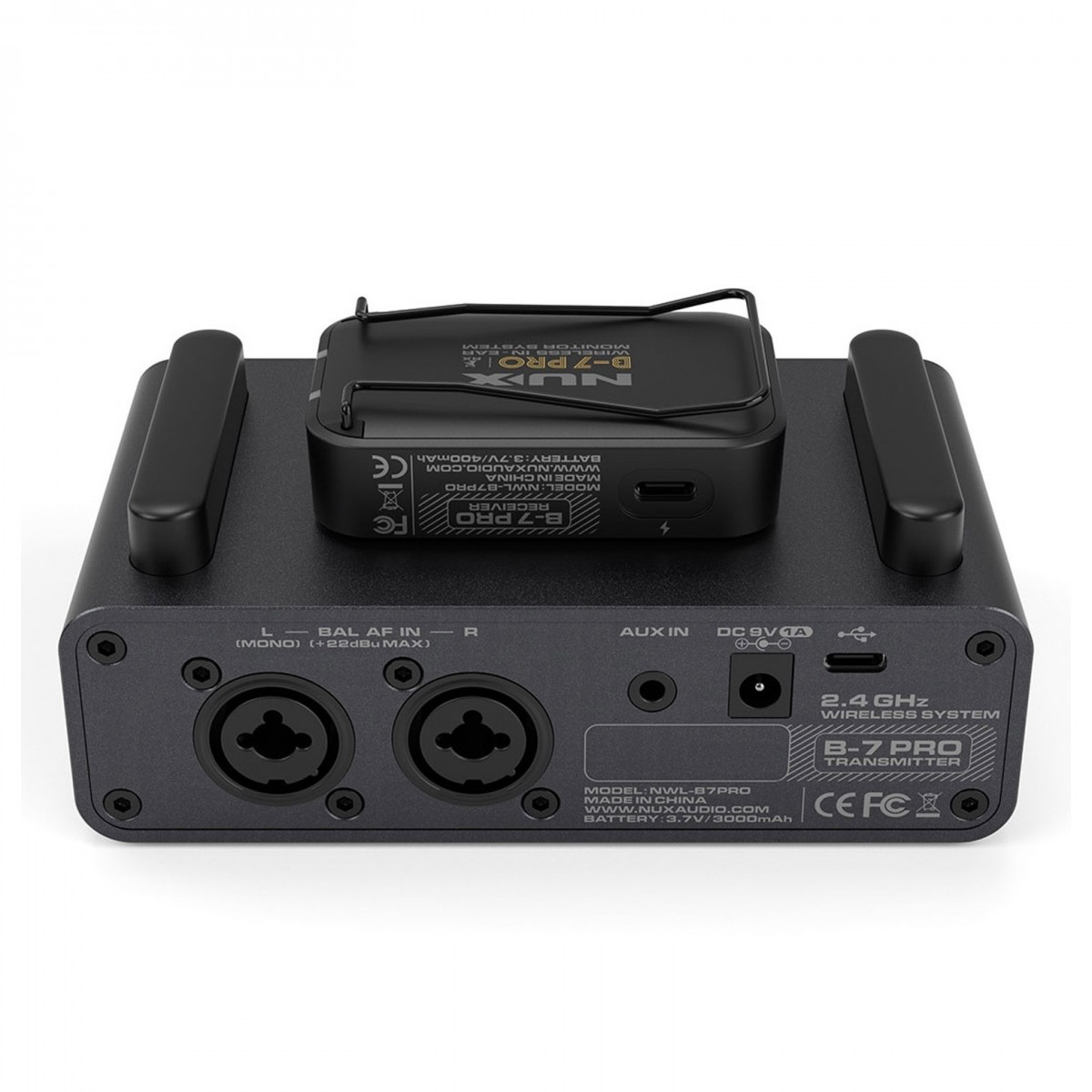 NUX B-7 PRO este un sistem profesional de monitorizare wireless in-ear cu configurare automată, frecvență de emisie fără interferențe de 2,4 GHz și audio stereo de înaltă calitate pe 24 de biți și 48 kHz. Latența de transmisie a semnalului este de doar 7,3 ms la performanțe maxime. Raza de operare este de până la 50 de metri.
