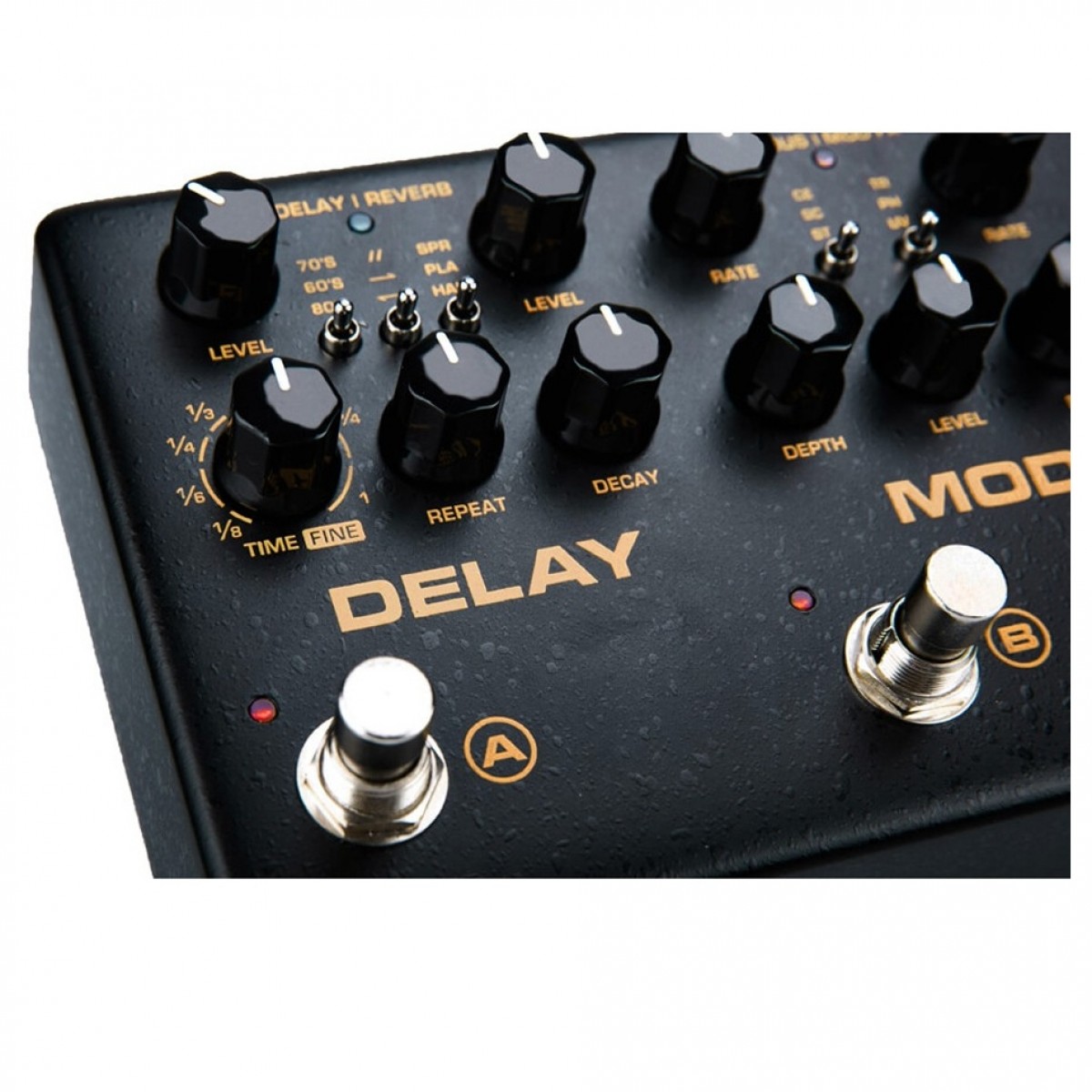 - 6 tipuri diferite de efecte în 4 grupuri de efecte (delay / reverb, mod, distortion, drive)