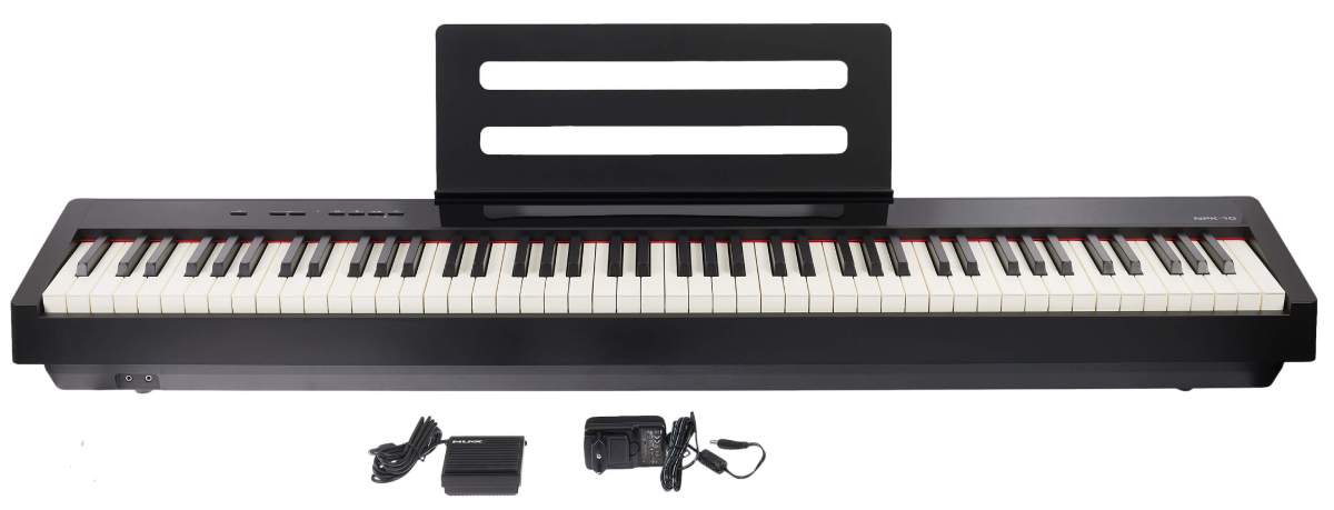 Un pian digital portabil potrivit pentru începători și pianisti avansați care doresc simplitate si și funcționalitate. NPK-10 poate fi folosit în spectacole live, inregistrari de studio, dar și ca instrument în sala de clasă sau acasă, deoarece senzația de cântat este aproape ca cea a unui pian tradițional. Veți avea la dispoziție 12 sunete de calitate, 12 ritmuri și, bineînțeles, o conectivitate flexibilă, inclusiv tehnologia modernă fără fir Bluetooth pentru streaming de muzică. NPK-10 dispune de 88 de taste cu senzor triplu de raspuns la atingere, cu cinci niveluri de sensibilitate pentru cea mai bună experiență de inteepretare. 12 sunete (Grand Piano, Marimba, Strings, Organ etc.) pot fi îmbunătățite cu efecte precum Delay, Reverb și Chorus. Apoi, bineînțeles, există un metronom cu 9 tipuri de bătăi, 12 stiluri de ritm, înregistrare, divizare/split a tastaturii și posibilitatea de a salva presetări în două bănci de memorie. Conectivitatea flexibilă include ieșiri duble pentru căști, USB MIDI, intrare AUX, ieșire stereo și intrări pentru o pedală Damper (inclusă) și o pedală de trepied (optionala).