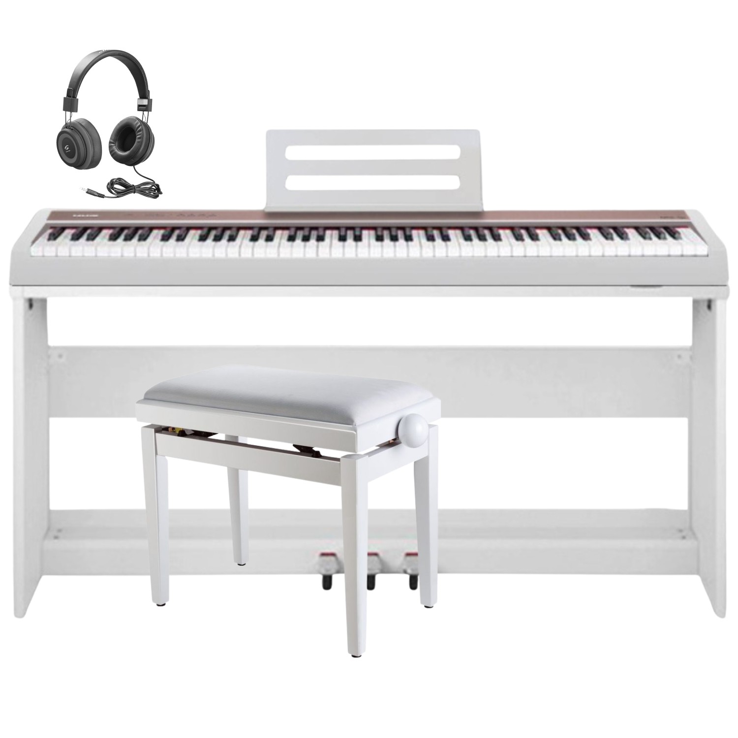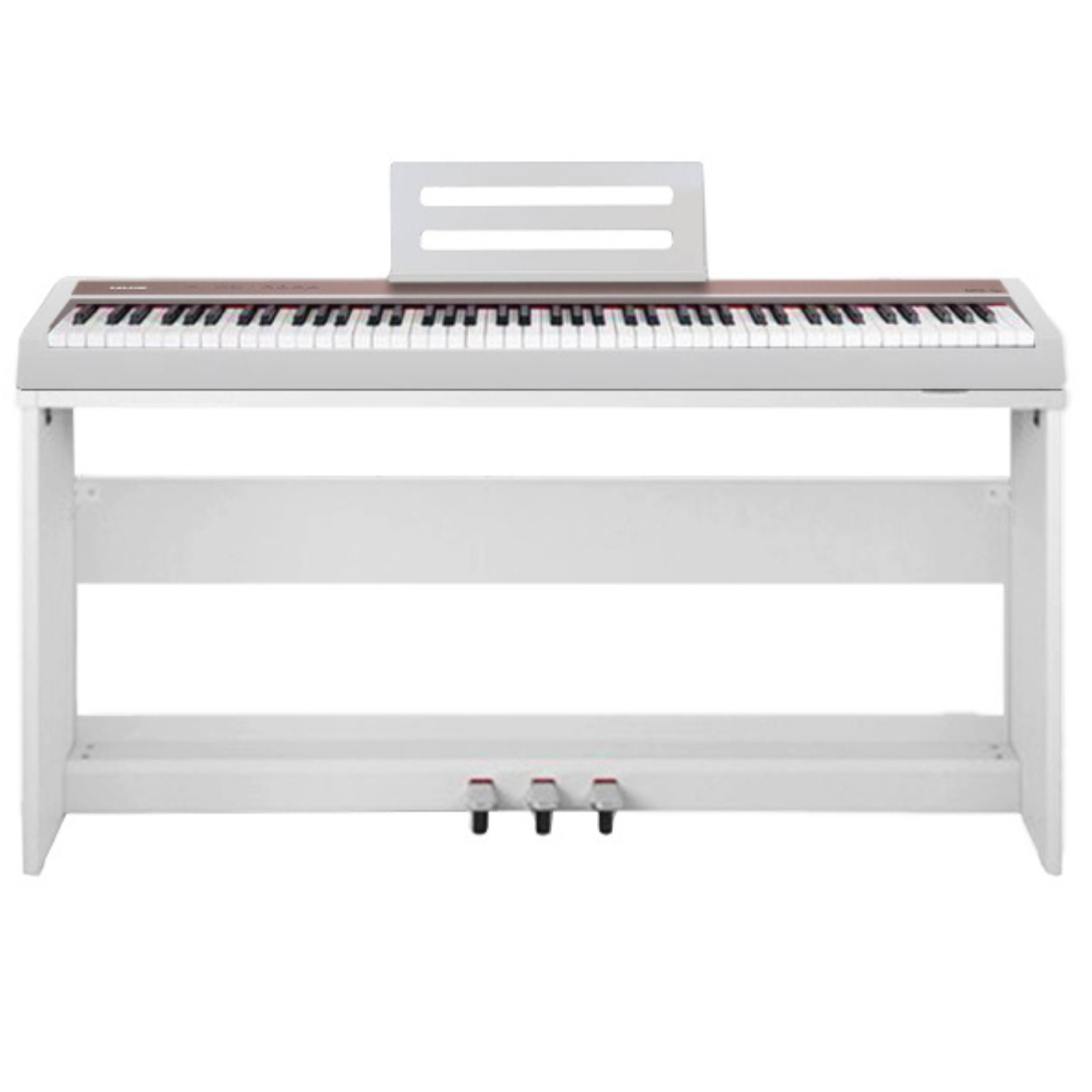 Un pian digital portabil potrivit pentru începători și pianisti avansați care doresc simplitate si și funcționalitate. NPK-10 poate fi folosit în spectacole live, inregistrari de studio, dar și ca instrument în sala de clasă sau acasă, deoarece senzația de cântat este aproape ca cea a unui pian tradițional. Veți avea la dispoziție 12 sunete de calitate, 12 ritmuri și, bineînțeles, o conectivitate flexibilă, inclusiv tehnologia modernă fără fir Bluetooth pentru streaming de muzică. NPK-10 dispune de 88 de taste cu senzor triplu de raspuns la atingere, cu cinci niveluri de sensibilitate pentru cea mai bună experiență de inteepretare. 12 sunete (Grand Piano, Marimba, Strings, Organ etc.) pot fi îmbunătățite cu efecte precum Delay, Reverb și Chorus. Apoi, bineînțeles, există un metronom cu 9 tipuri de bătăi, 12 stiluri de ritm, înregistrare, divizare/split a tastaturii și posibilitatea de a salva presetări în două bănci de memorie. Conectivitatea flexibilă include ieșiri duble pentru căști, USB MIDI, intrare AUX, ieșire stereo și intrări pentru o pedală Damper (inclusă) și o pedală de trepied (optionala).