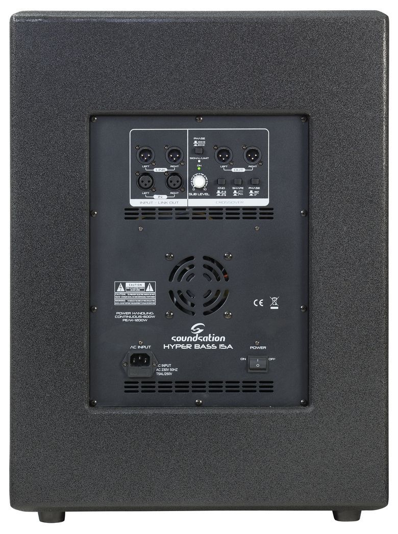 Subwoofer-ul activ Hyper Bass 15A este proiectat de către compania italiană Soundsation, utilizând cele mai noi tehnologii disponibile pe piață. Acest subwoofer activ este echipat cu difuzor 15". Incinta construită din placaj de mesteacăn, împreună cu grilajul metalic și antifonarea interioară cu burete face ca Hyper Bass 15A să fie un subwoofer care arată bine și asigură un sunet curat și puternic.