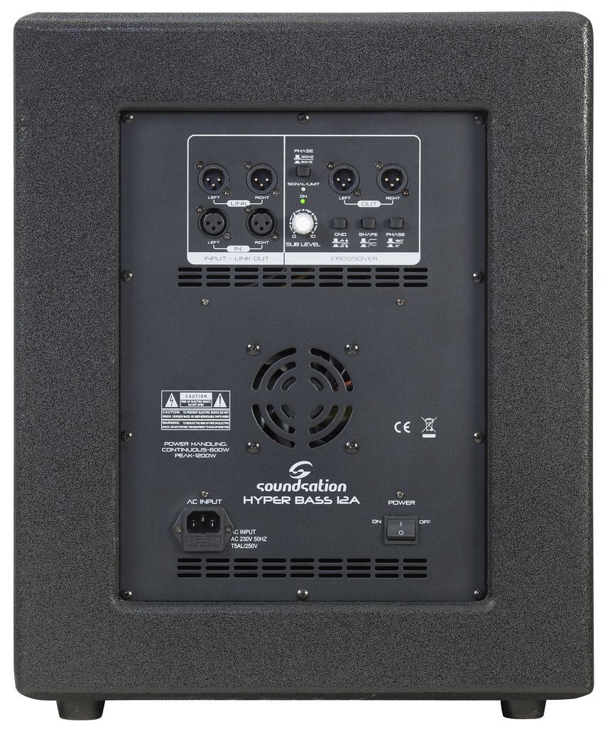 Subwoofer-ul activ Hyper Bass 12A Subwoofer-ul activ HYPER Bass 12A este proiectat de catre compania italiana Soundsation, utilizand cele mai noi tehnologii disponibile pe piata. Aceste subwoofere active sunt echipate cu difuzoare de 12 inch, 15 inch sau 18 inch. Incinta construita din placaj de mesteacan, impreuna cu grilajul metalic si antifonarea interioara cu burete face din Hyper Bass un subwoofer care arata bine si asigura un sunet curat si puternic.