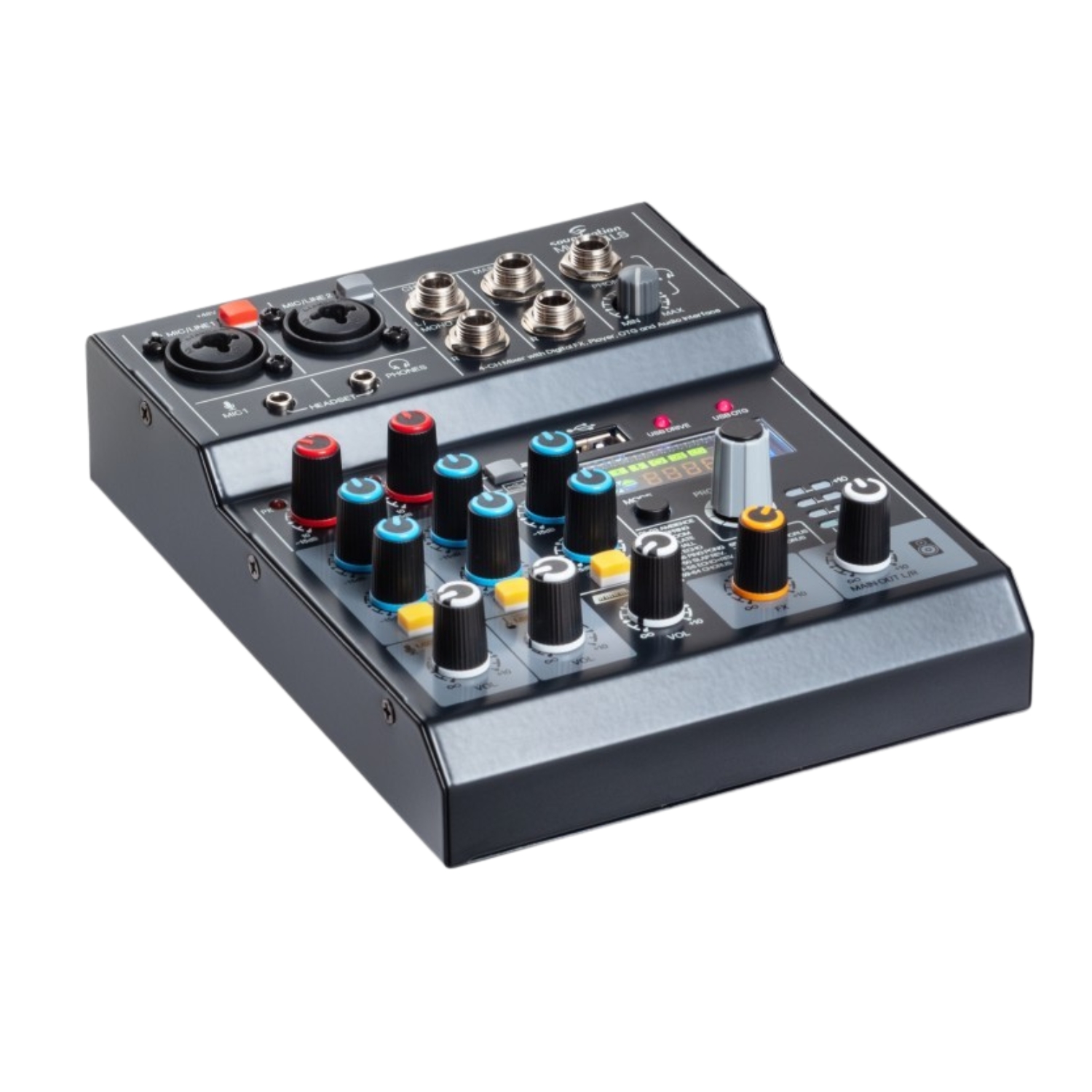 - Conexiuni de intrare: XLR + mufă 1/4" (intrare linie microfon), XLR + RCA stereo + mini mufă stereo (intrare linie)